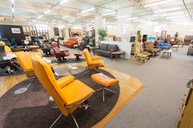 お店は家具団地内を通るスマイルロード沿いにあります。