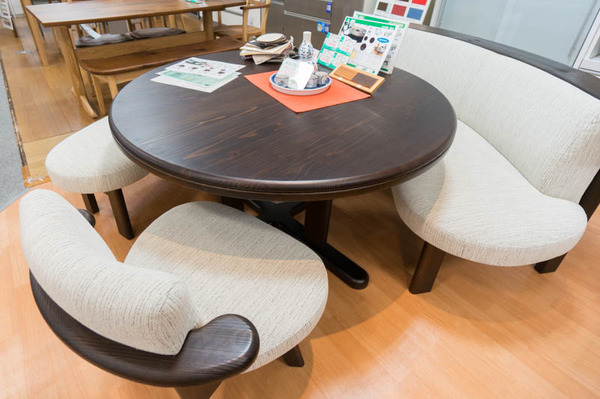 机の脚は四隅にあるタイプと、真ん中に集まっているタイプのどっちが座りやすいかなど、部屋の広さや用途に合わせて、さまざまな提案をしてもらえるそうです。