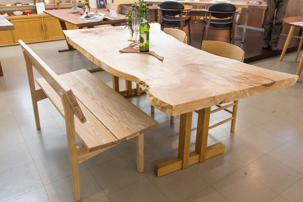 「一枚板のテーブル」を扱っているというだけあり、店内には一枚板のテーブルがたくさん。