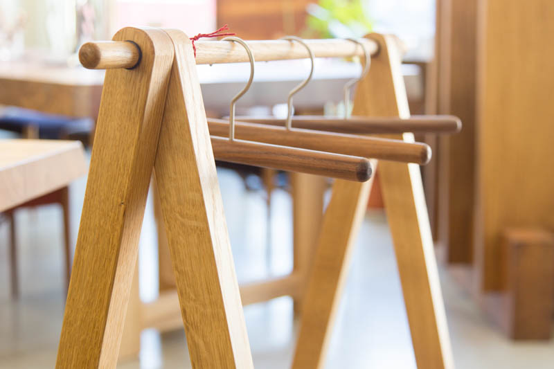 艮(うしとら)さんが手を置いているコチラの子供用のハンガーは以前体験教室で製作したもの。