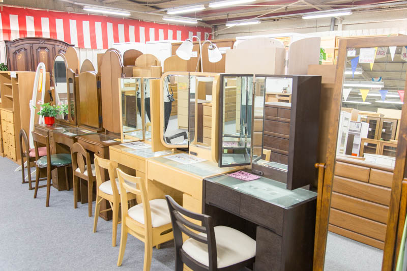 本当に店内が広くて、様々な家具が所狭しと並んでいる「家具の田辺」。