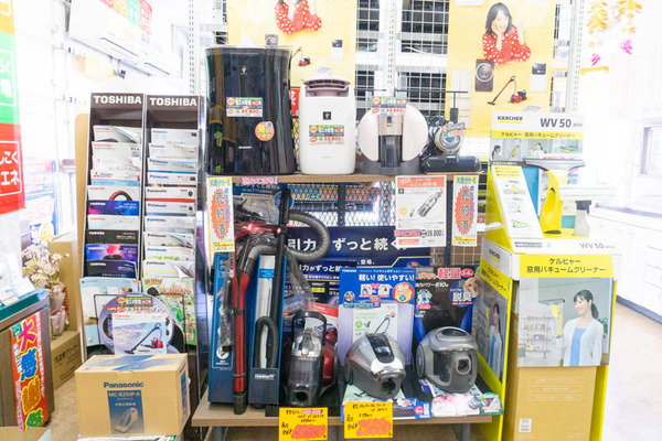 掃除機や空気清浄機のコーナーには、一部売約済みの札がついた商品も。