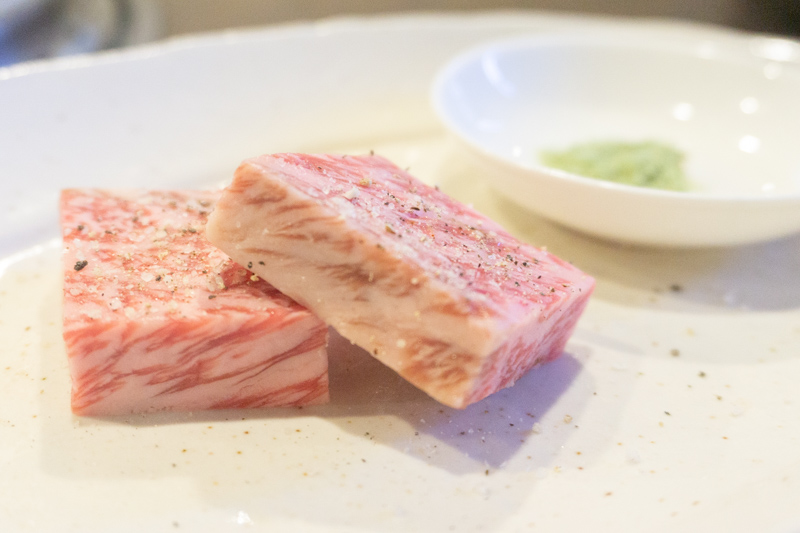 わさび塩のみで頂くことで、お肉本来の旨味が感じられます。
