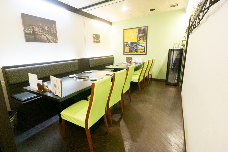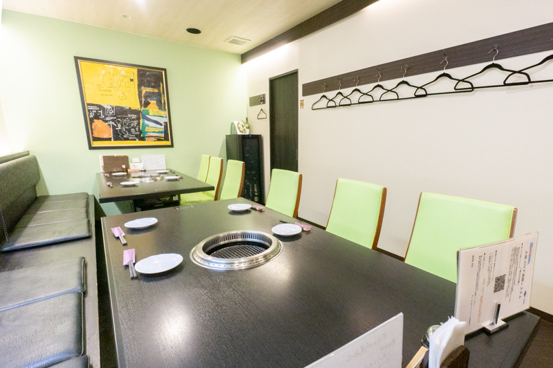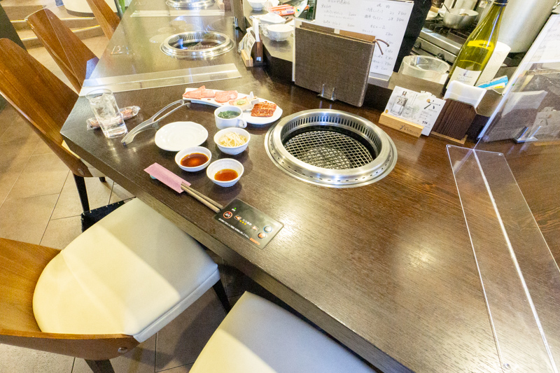 ロースター(お肉を焼くところ)が2人で1つと、ゆったりとしたスペース。