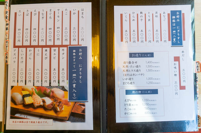 他にもお寿司を単品から注文できたり、うなぎも自慢のお店。