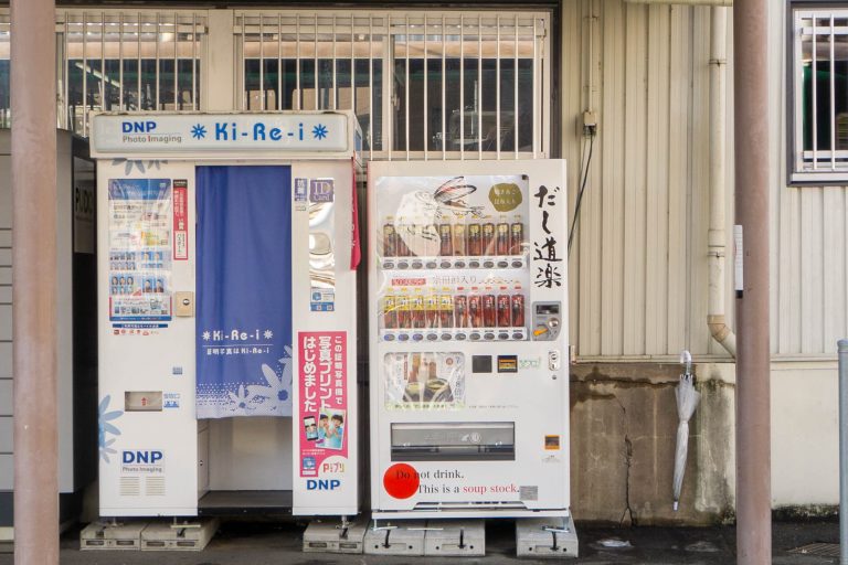 牧野駅のバスロータリー側に「だし道楽」の自販機が設置されてる