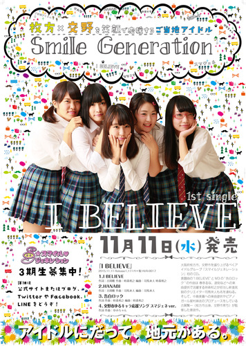 枚方・交野の地域アイドルグループ「スマイルジェネレーション」が1stシングル「I BELIEVE」を発売したようです。CDリリースのお知らせ スマイルジェネレーション公式サイト上記リンク先によると、11月11日 […] -