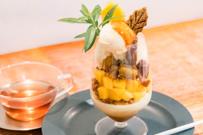 「ハーブとガレット」の季節限定パフェ『紅はるかと柿の塩キャラメルパフェ』(交野市私部)【ひらつーグルメ】