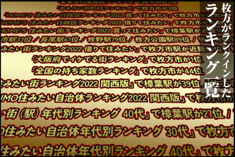 住みよさランキング近畿版トップ50に枚方ランクイン