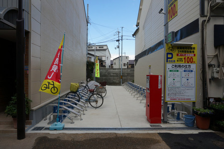 枚方公園駅前にコイン式自転車駐輪場ができてる