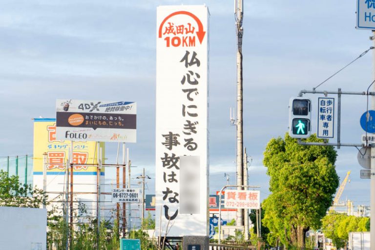 1号線の巨大看板に書いてる「仏心でにぎる○○○○事故はなし」。当てはまるのはなに?【ひらかたクイズ】
