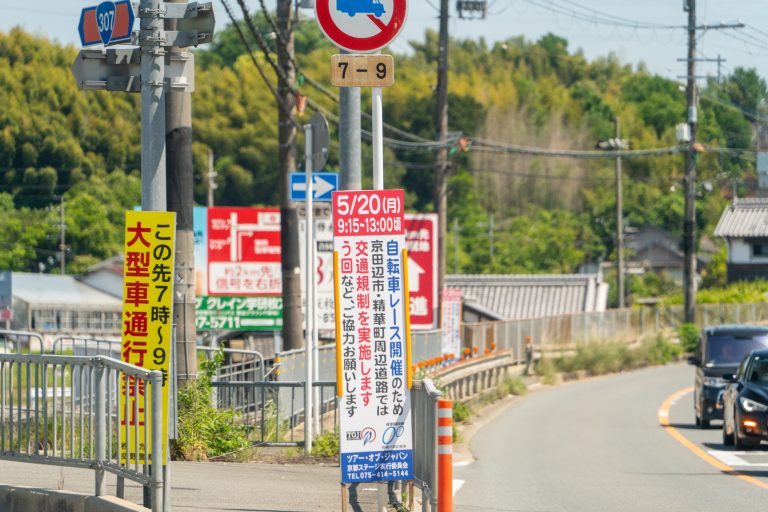 京田辺市普賢寺から精華町あたりで5月19日に交通規制が行われるようです。 ソースは看板と公式サイトで、普賢寺〜精華町周辺で自転車レース「ツアー・オブ・ジャパン2025 JPF 京都ステージ」が開催されるとのこと。 9時1 […] -