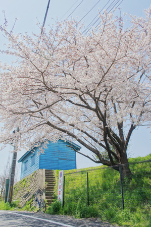 橋本小金川、桜と小屋【枚方フォト】 #枚方の桜
