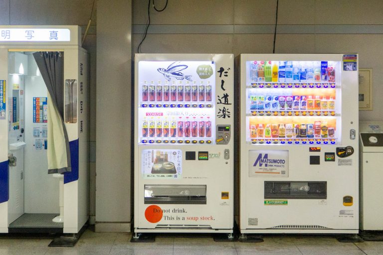 枚方市駅の東改札ちかくに「だし道楽」の自販機ができてる