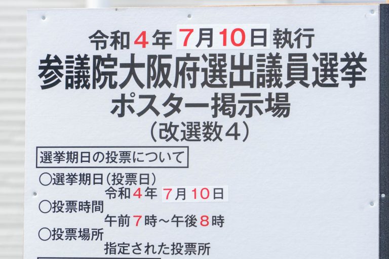 本日7月10日は投票日なので再アップします。 6月22日に第26回 参議院大阪府選出議員選挙が公示されました。 18名の立候補者と公式サイトを掲載します。 候補者一覧(※掲載順は届出順です。ポスターがない候補者に関しては […] -