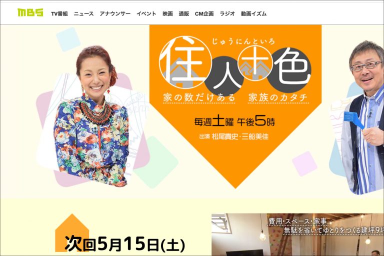 MBS「住人十色」で枚方市にある家が紹介されるみたい。5月15日放送