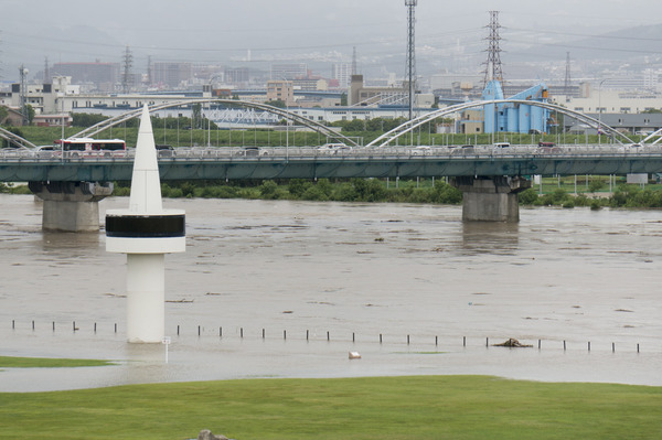 淀川河川公園枚方地区が大雨のため臨時閉園してる。だいぶ冠水してきた