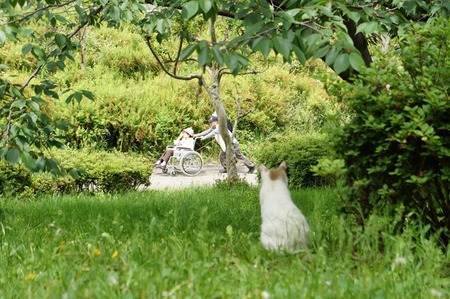 山田池公園。車椅子を押して散歩する人を猫が眺めてました。猫「はいガンバレガンバレー」上の写真と下の写真でピント位置を変えてるんですけどこのサイズじゃいまいちわからないですね。クリックして拡大したらわかると思います。だから […] -