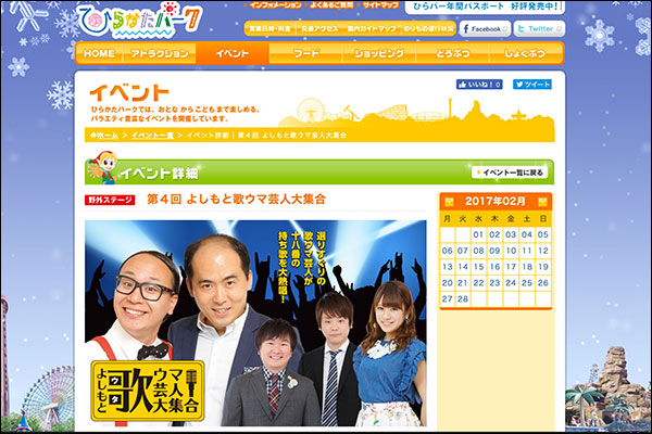 ひらかたパークで「よしもとスーパー漫才バトル2017」というイベントが開催されるようです。よしもと スーパー漫才バトル2017 ひらかたパーク上記リンク先によると、ひらかたパークの野外ステージにて2月5日(日) […] -
