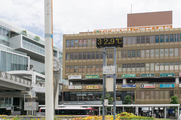 枚方市駅ロータリーの温度計が41℃を表示してる