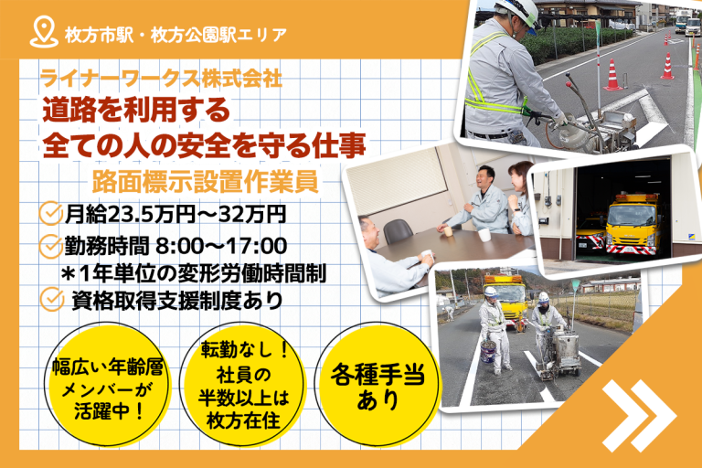 【正社員】ライナーワークス株式会社 路面標示設置作業員【求人まとめ】