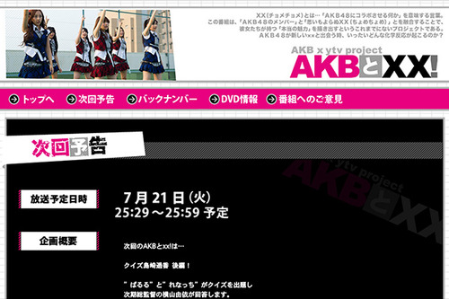 6/23放送のTV番組「AKBとXX!」はひらパーで島崎遥香がクイズしてたみたい。来月は完結編