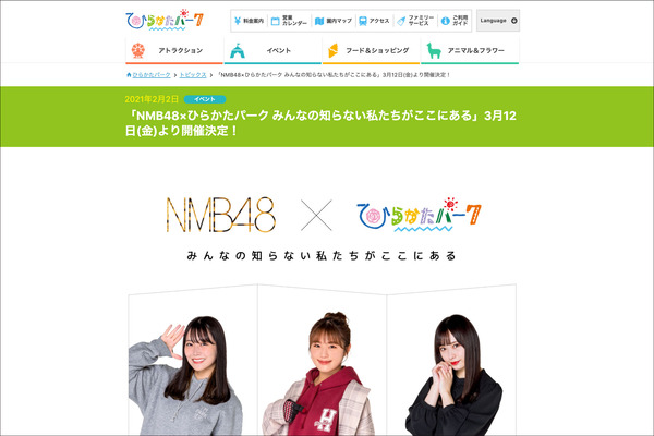 NMB48とひらかたパークのコラボイベントが開催されるようです。「NMB48×ひらかたパーク みんなの知らない私たちがここにある」3月12日(金)より開催決定! | ひらかたパーク大阪・なんばを基盤に活動するアイドルグル […] -