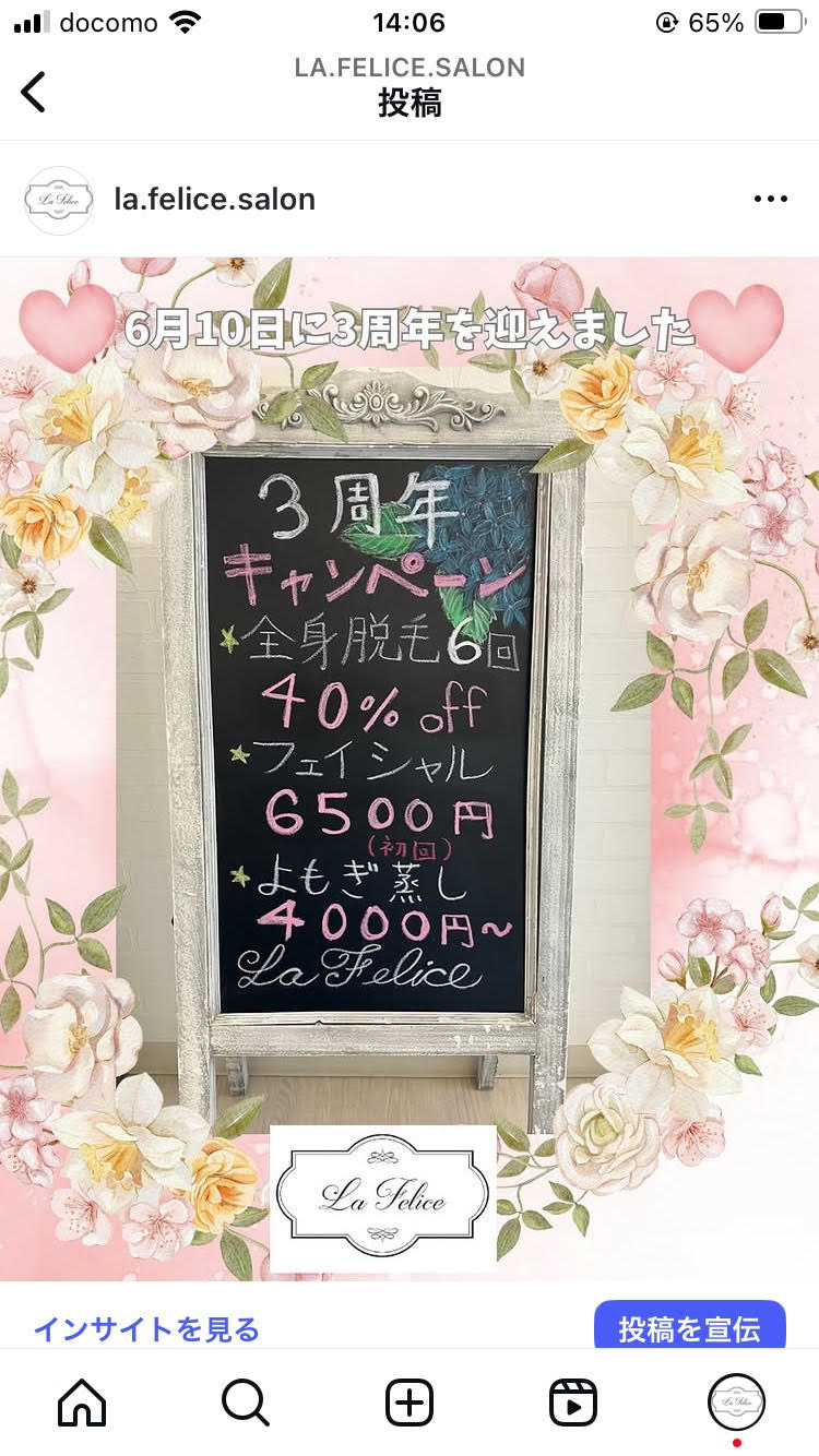 おかげさまで6月10日にLa Feliceは3周年を迎えることができました✨