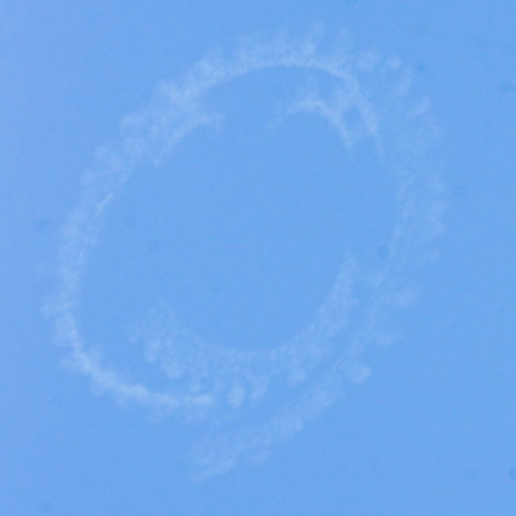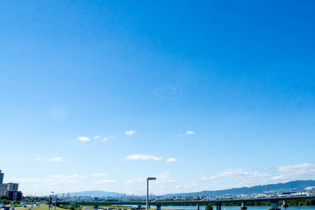 関西医大タワーの近くの空に謎の2重の丸い形をした雲を見つけました。
