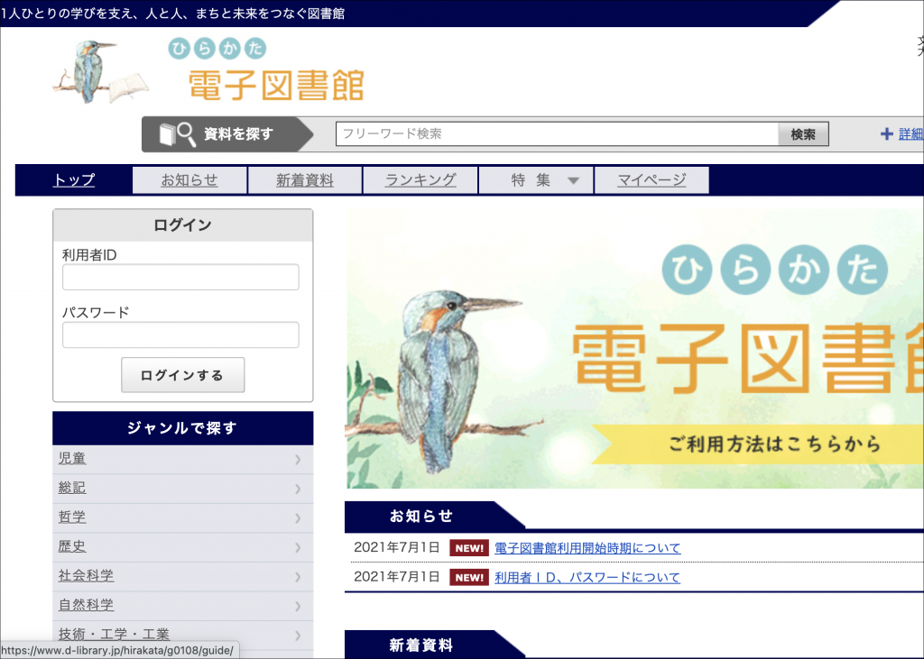 枚方市のこちらのページによると、7月1日より枚方市に在住または通勤・通学の方を対象に電子書籍の貸出が始まったとのこと。また約3000タイトル読むことができるようです。