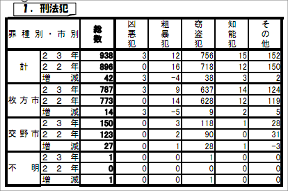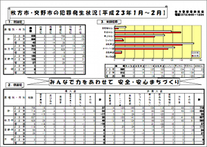 2011年1月~2月に枚方・交野で起こった犯罪のまとめが枚方警察署HPにアップされていました。
