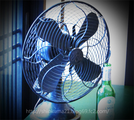 画像を投稿してくださったのは京街道沿いにある「塩熊商店」さん(→地図)。この扇風機は『母屋の納戸から発見された』のだそうな。