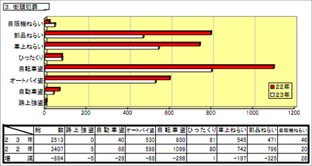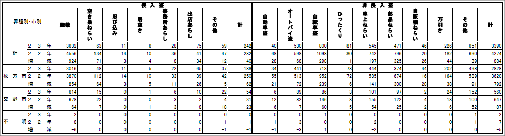 2011年1月から9月に枚方警察署管内(枚方市・交野市)で起こった犯罪の統計が枚方警察署HPにアップされています。