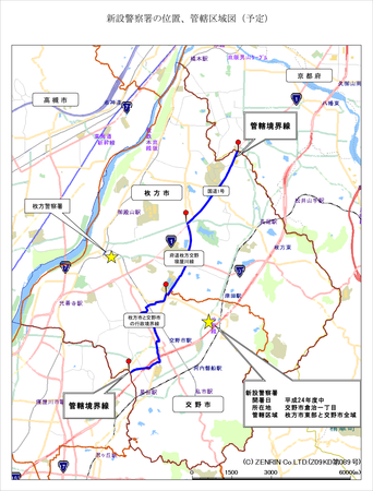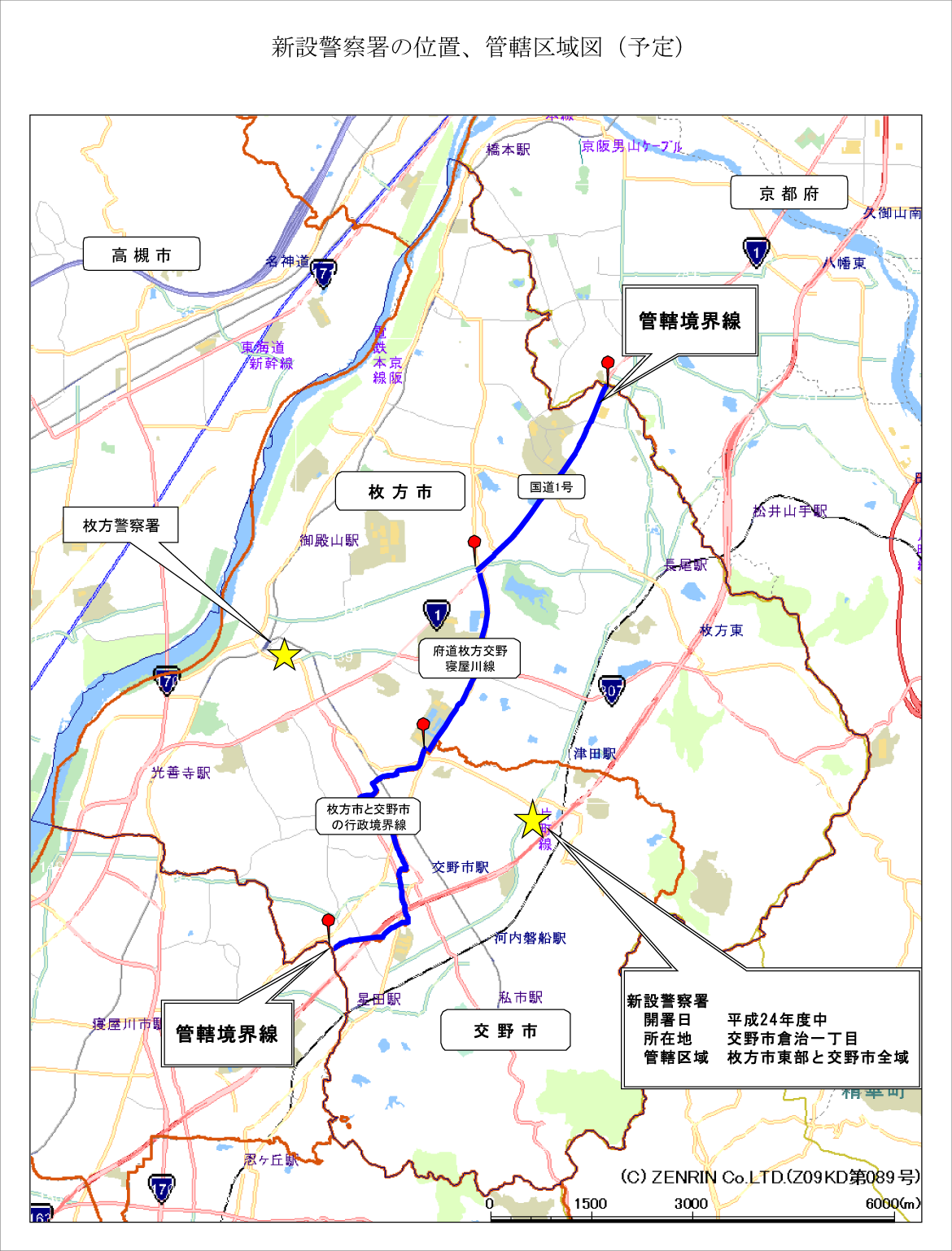 そしていま交野市倉治に『交野警察署』をつくってますが、枚方警察署HPにその管轄区域マップが載ってました。