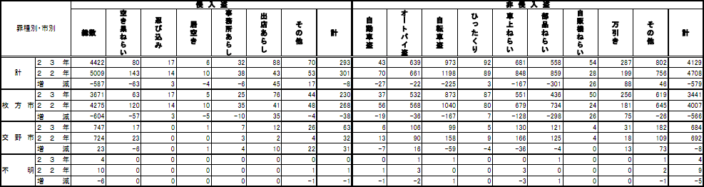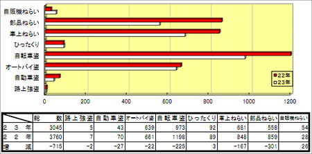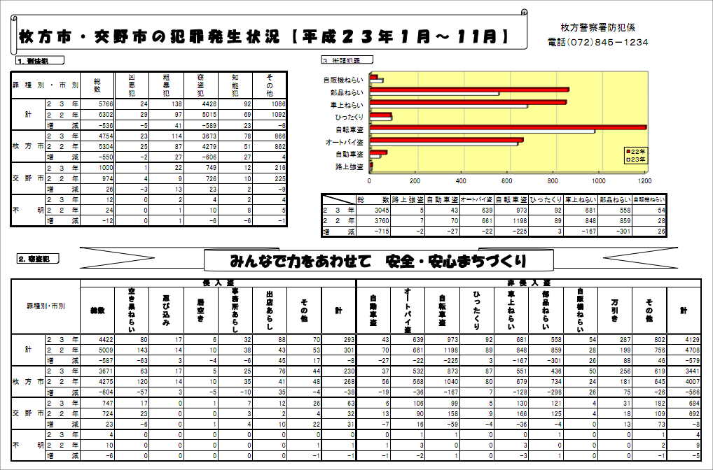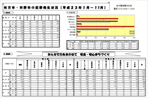 2011年1月から11月に枚方警察署管内(枚方市・交野市)で起こった犯罪の統計が枚方警察署HPにアップされています。