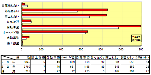 ひったくりと自販機ねらい以外は全て減少しています。