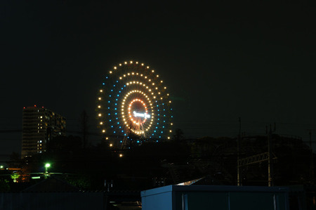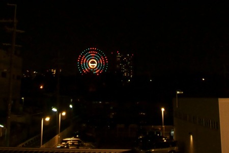 ひらかたパークの観覧車のイルミネーションが「ひ」になってます。