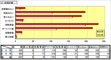 オートバイ盗がほぼ半減してます。すごい。