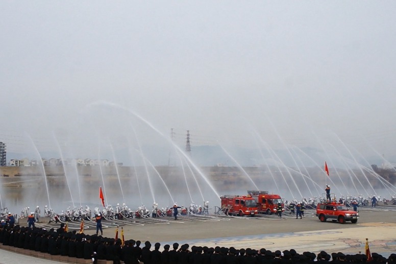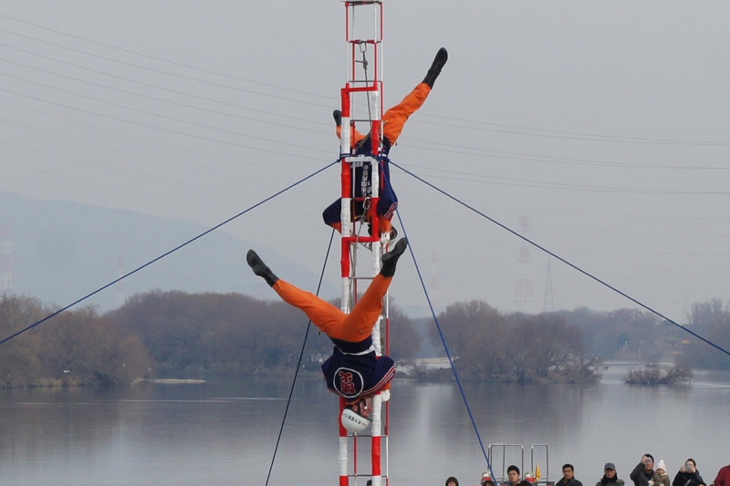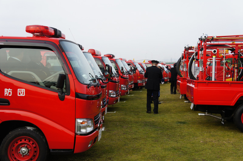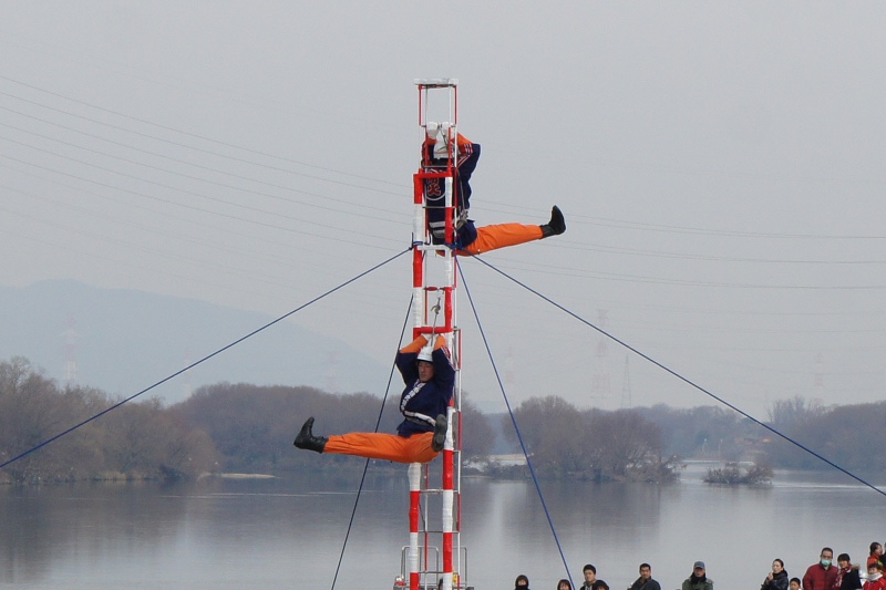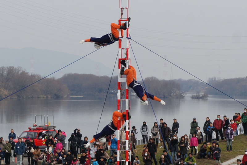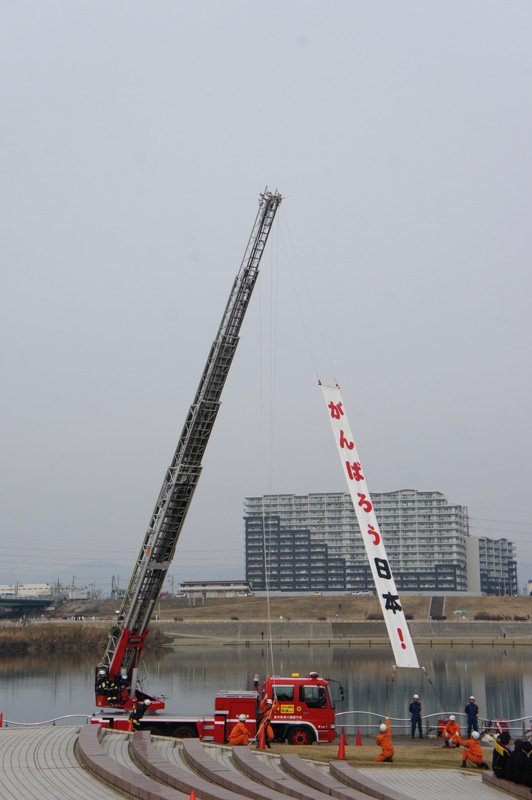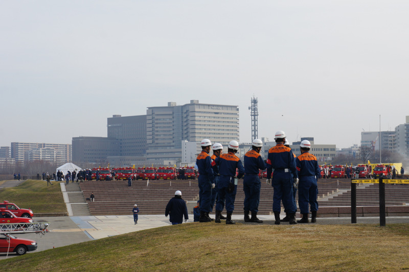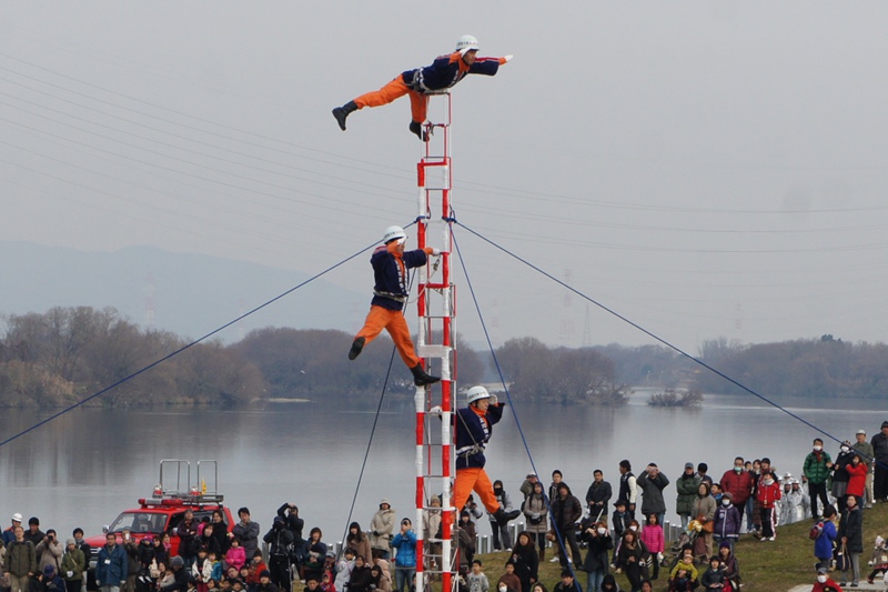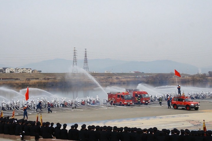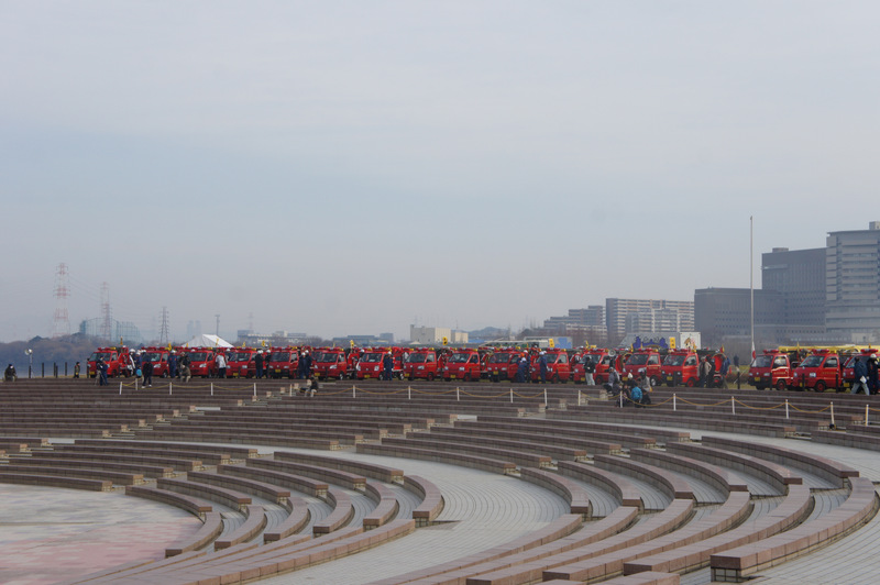 今日(1月13日)の朝、淀川河川公園で枚方寝屋川消防組合の出初式(でぞめしき)が行われてました!