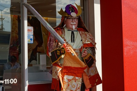 去年は枚方市駅前のエル・枚方店のカーネルおじさんも鎧を着てたんですが5月2日時点では普通のカーネルおじさんでした。