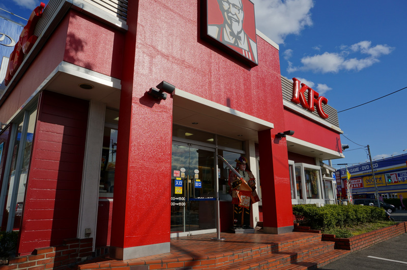 ちなみにこの武者コスプレは全国のいろんなケンタッキーで行われていて、Twitterで「カーネル」って検索して画面左側の「人気の写真」をクリックしたらたくさん見れます。フロンターレ仕様の鎧とかおもしろいですよー。
