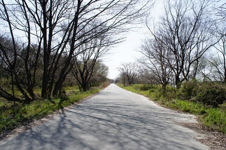 これはまだちょっと寒い3月の写真ですが、こんな感じでずーっとまっすぐの道が続いてます。
