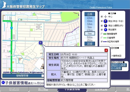大阪府警察の犯罪発生マップでも見ることができます↓