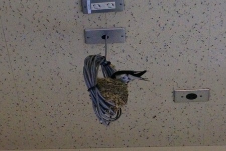 あぁこのへんに巣を作ってるんやなーと何気なく鳴き声のするほうを見ると、予想外の場所に巣がありました。
