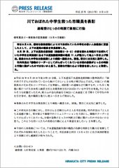 西船橋の川で溺れた中学生を枚方市上下水道局の人が助けたという出来事があったそうで、助けた人が表彰されてます。