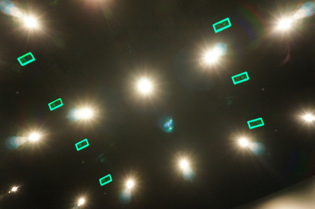 TOHOシネマズくずはモールでは、ドルビーが提供する革新的なシネマ音響「ドルビーアトモス」を関西で初めて導入しています。この写真は天井を撮ってるんですが、緑色に光ってるのはすべてスピーカーで音が上から降ってくる感覚を味わえるらしいです。音を移動させることにより「動き」の効果を創出するんだそうな。(→ドルビーアトモス詳細)
