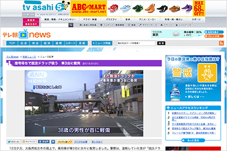 信号待ちで脱法ドラッグ吸う 車3台に衝突 テレ朝news動画あり