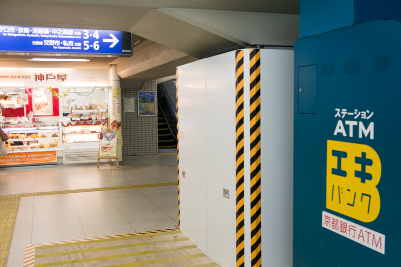 ついでに枚方市駅をぶらっとしていると、駅構内にも以前記事にした耐震工事らしき囲いがありました↓