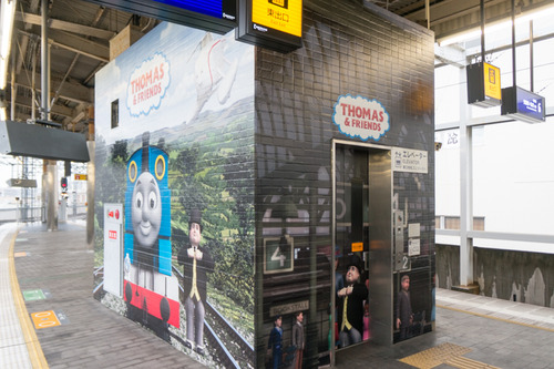 京阪交野線の各駅と枚方公園駅で「きかんしゃトーマスとなかまたち2015」というイベントがはじまり、駅がきかんしゃトーマスに装飾されています。
