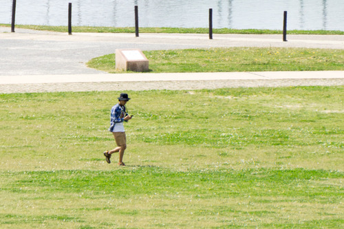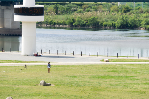 河川敷でイングレスをする様子(鍵屋別館からすどん@ひらつーが激写)